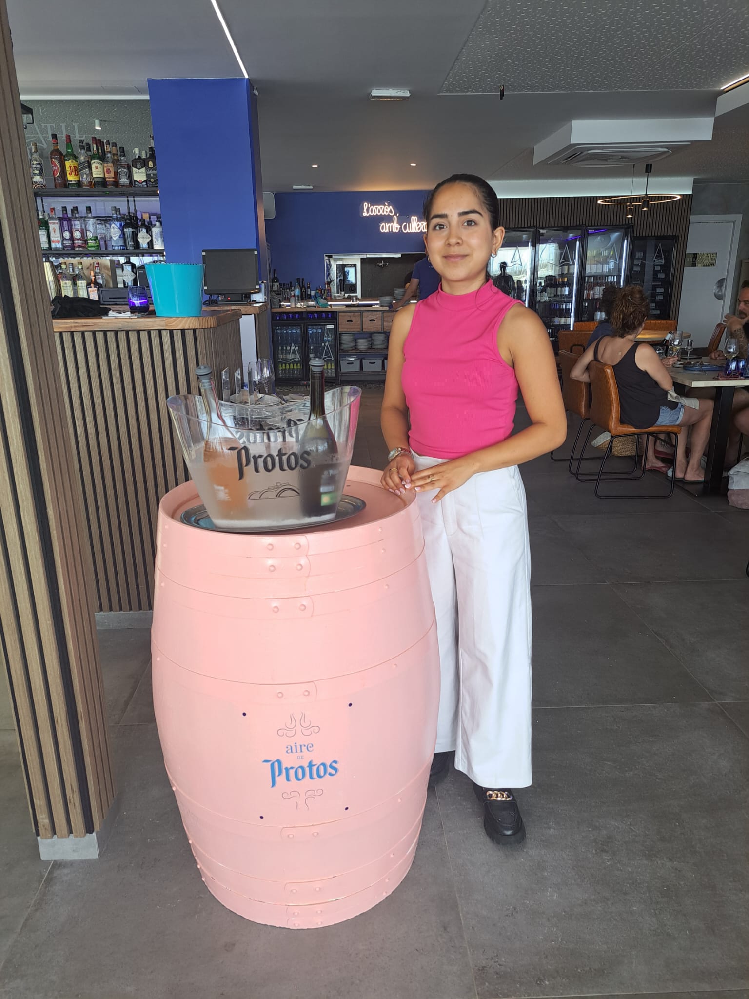 Contamos en total con 23 brand ambassadors vestidas con el rosa corporativo de Protos, se repartieron por restaurantes a lo largo de tres fines de semana, ofreciendo degustaciones de Protos Aire Rosé y Cuvée Verdejo. Además de servir copas de vino, realizaron dos sorteos: el primero a nivel nacional, donde todos los restaurantes participantes podían ganar una exquisita experiencia de cata de vinos, y el segundo sorteo, realizado in situ al finalizar cada turno de comidas/cenas, permitía al ganador llevarse un excelente pack de vinos Protos.
